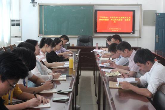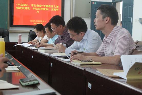 为准确把握党中央精神,结合学院与系部工作实际,对准目标,积极推进思想政治工作,确保取得预期效果,2019年10月16日下午14:40,我系于实训三408会议室召开“不忘初心、牢记使命”主题教育之加强政治建设,牢记为民使命交流学习会议。会议由党总支书记吴奇镇主持,系主任谢金生、党政办主任黄立靖、教务科科长官飞、学生科科长叶文美,谢婉欣、刘克芹、王辉等教师到场参加,院纪检监察室科长罗志斌到场指导学习。几位党总支成员进行多方面交流,从深刻学习中提取感悟。