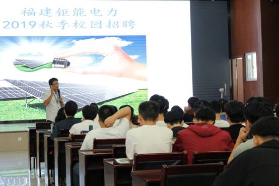 会上,福建钜能电力有限公司的人事经理刘好荣为即将毕业的学生们详细全面地介绍了公司的发展概况、企业文化、工作环境、员工培训、晋升通道、工作岗位以及薪酬福利待遇等,刘经理表示,由于工作需要,希望应聘者能吃苦、肯吃苦、有责任心,具备扎实的基础知识和良好的实践能力。宣讲会结束后,刘经理耐心的回答了学生提出的疑惑和感兴趣的问题,并由公司人力资源部门有关人员作出仔细而又专业的解答,使得每一位应聘者都能消除疑虑,增进自己对该公司产业的了解。