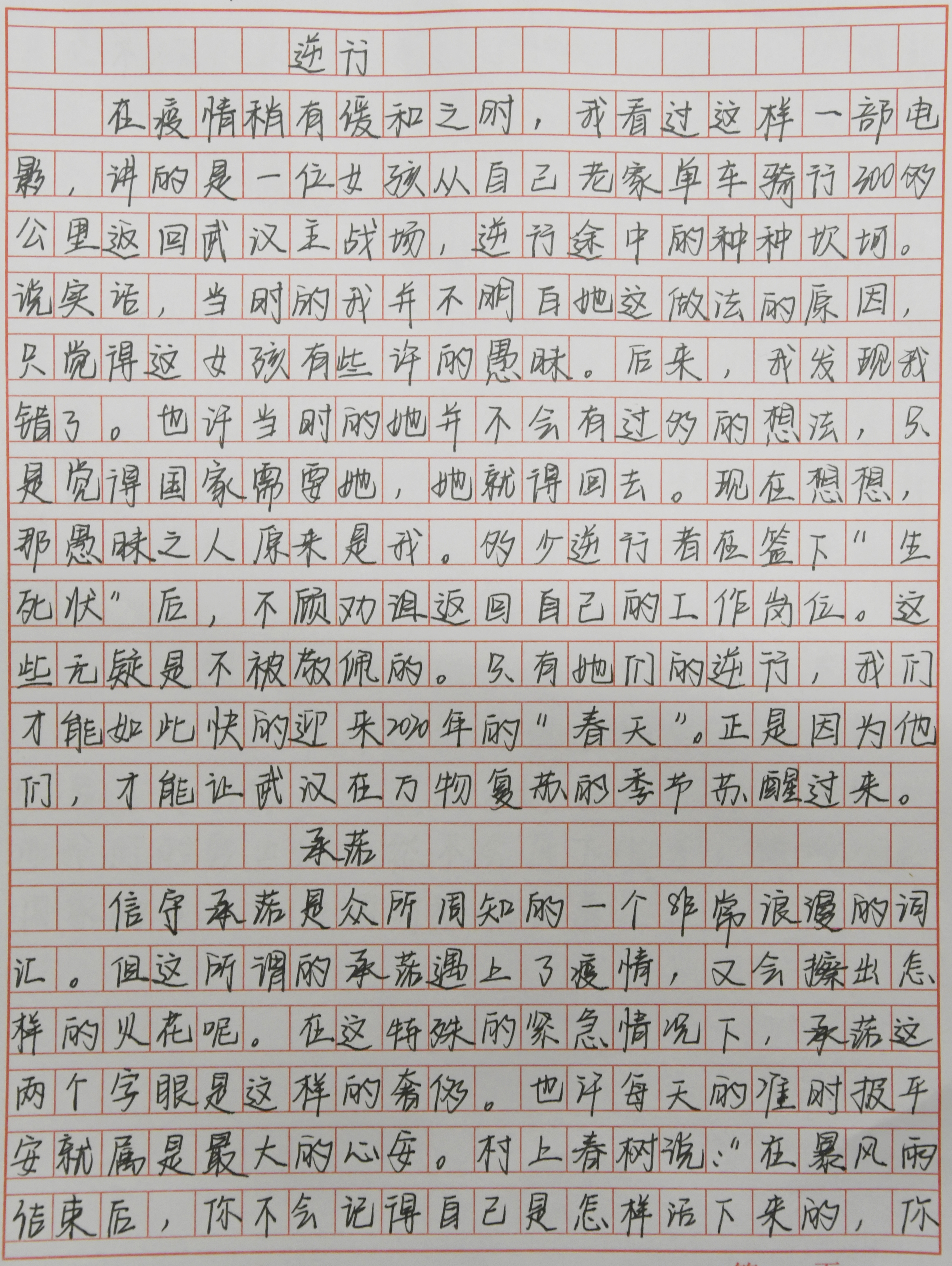 本次的活动通过用网络电影的形式,帮助同学们回首一段刻骨铭心,传递对今年抗击新冠疫情的战场武汉、以及战疫斗争中每个“战士”的敬意与感恩,展现出中国人无论面对什么困难,都会携手互助、无畏前行的伟大精神。