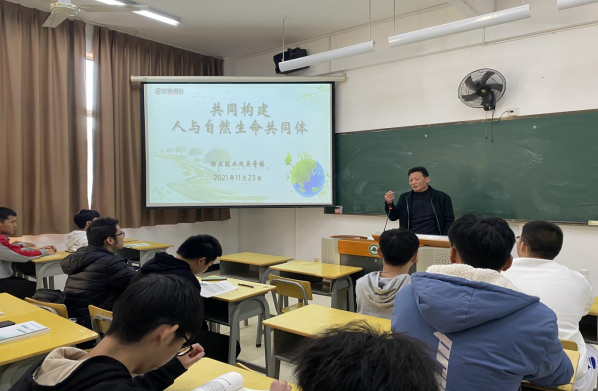 为深入贯彻落实习近平总书记提出的生态文明思想,推动构建人与自然生命共同体,11月23日下午,我院招生就业处处长吴奇镇在实训四601教室为无人机应用技术2001班上了一堂以“共同构建人与自然生命共同体”为主题的形势与政策课。