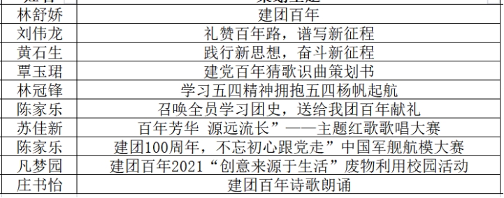 2021年,在党的百年华诞里,我们已经进入新时期,至此,可爱可敬的共青团也伴随党走过了百年历史,在2022年到来之际,我们也将迎来“团团”的百岁生日,为了留住这重要的时刻,我们举办“喜迎建团百年策划案大赛”,集思广益,筹集优秀有趣的策划,以此迎接团的百岁生日。