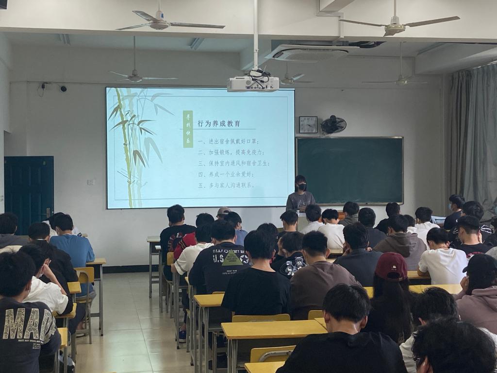 班会伊始,各辅导员和同学们就当前全国疫情和福建省3月疫情累计确诊人数总览进行分析,希望同学们能够对国内及福建省的疫情现况形成客观、科学、深刻的了解。与此同时各辅导员针对新型冠状病毒的病发症状和传播途径进行了全方位的介绍和科普,叮嘱同学们在进出宿舍、教室务必佩戴好口罩,做好室内通风和宿舍卫生,并从多地高校爆发聚集性疫情的实际案例中汲取经验和教训,提醒同学们切勿掉以轻心。