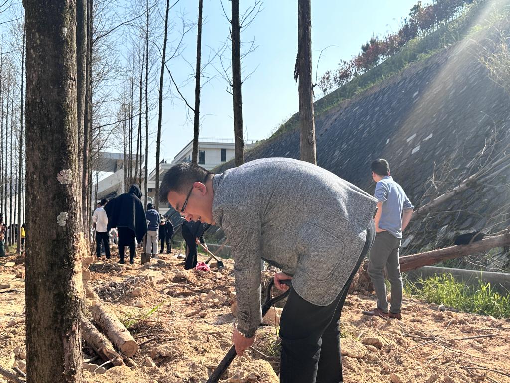 一年一度春风劲,又到一年植树时。为进一步贯彻落实习近平生态文明思想,树立和践行绿水青山就是金山银山的理念,培养学生树立正确的劳动观念和思想,培育学生积极的劳动精神,创造一个绿意嫣然、生机勃勃的校园环境,在我国第45个植树节即将来临之际,3月16日下午15:00,信息工程系党总支积极响应学院号召,组织师生志愿者开展2023年植树节志愿服务活动。信息工程系党总支书记兼主任华建祥、党总支副书记叶文美带领信息工程系师生志愿者共40余人参加本次活动。