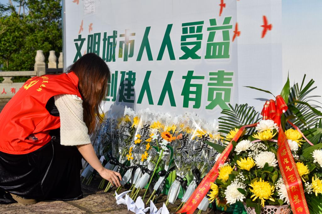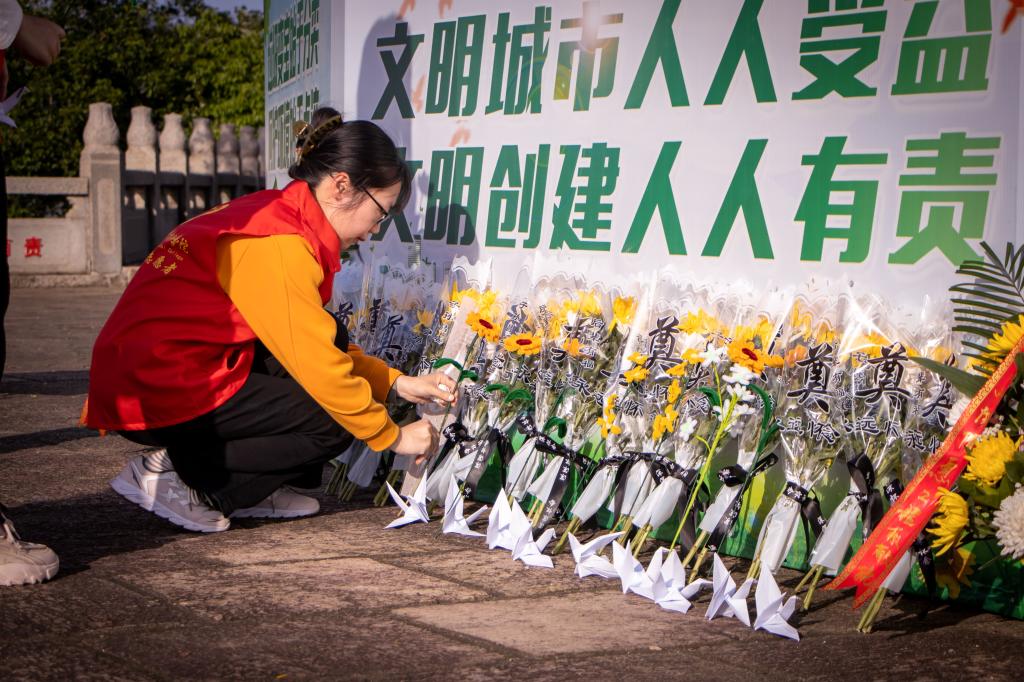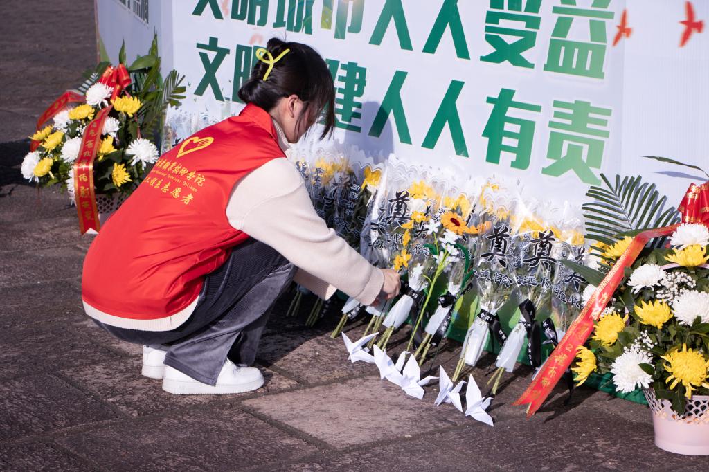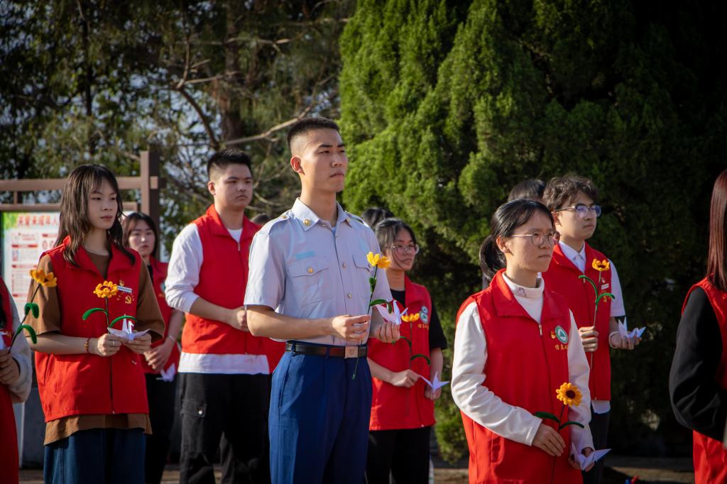 随后,全体师生列队有序敬献亲手折叠的向日葵和千纸鹤,瞻仰烈士纪念碑,并向雕像行鞠躬礼、绕行一圈,寄托师生们对先烈崇高的敬意、深切的缅怀。