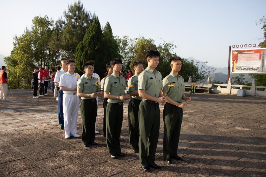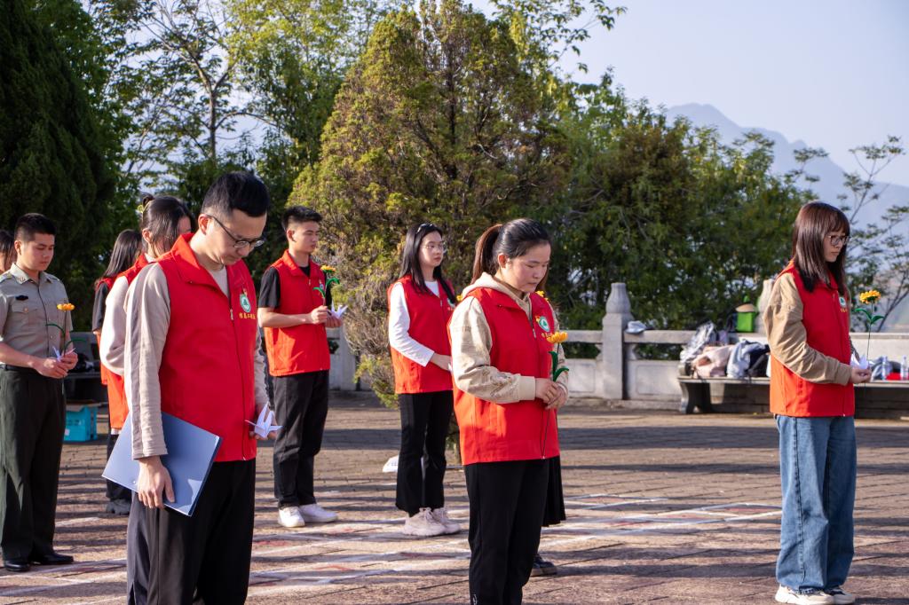 随后,在庄严肃穆的气氛中,师生们有序的排好队伍,面向高耸的烈士纪念碑,肃立在旁,默哀致敬,深切表达对英雄烈士的崇敬和缅怀,感悟革命烈士不怕牺牲、英勇奋战的革命精神。