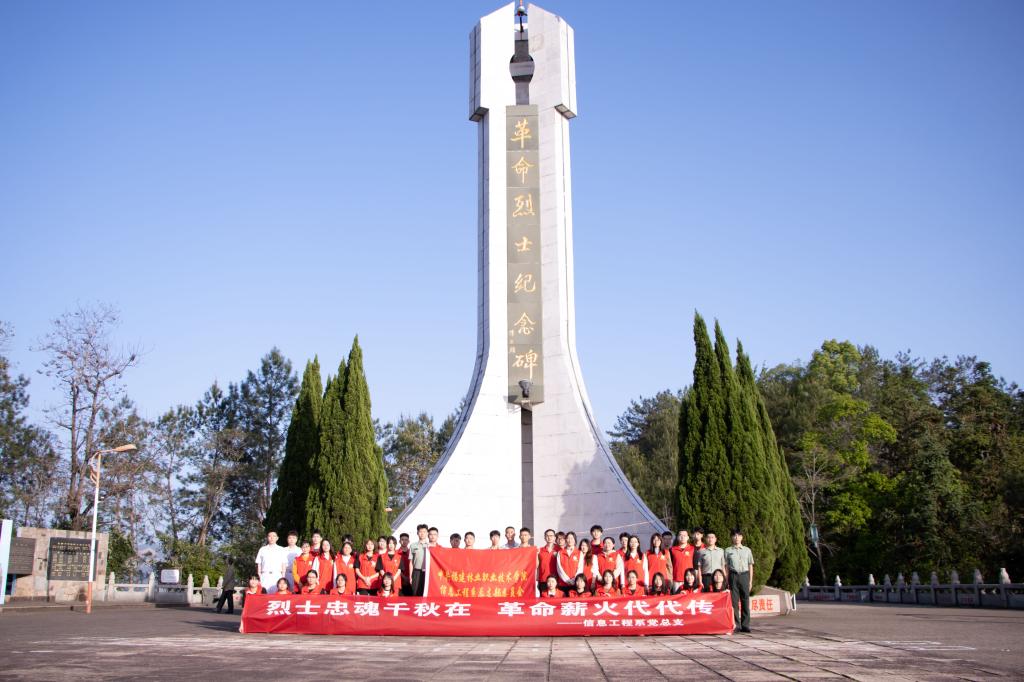清明祭英烈,薪火永相传。为深入学习贯彻党的二十大精神,深切缅怀革命英烈丰功伟绩,寄托对革命先烈的哀思,培养同学们的爱国主义精神和高尚情操,4月7日下午,信息工程系组织师生前往南平市九峰山革命烈士纪念碑举行清明缅怀先烈活动。信息工程系党总支副书记叶文美、学生科科长兼团总支书记吴文杰、组织专员谢婉欣、辅导员以及学生代表参加本次活动。