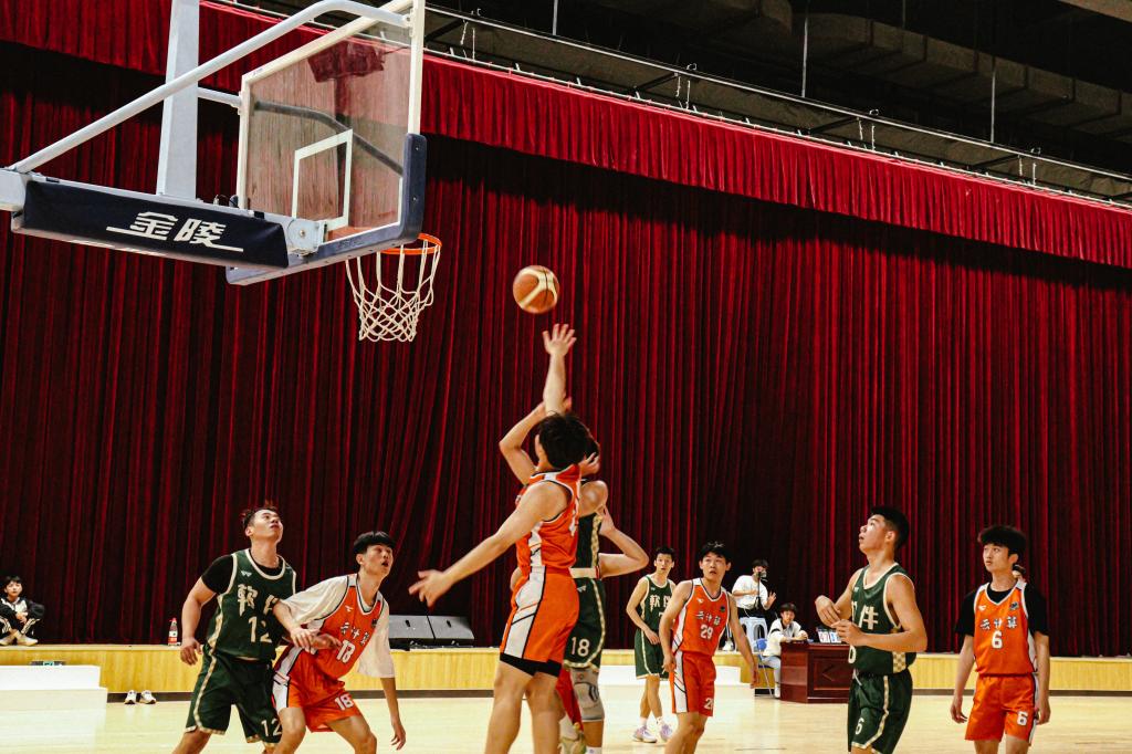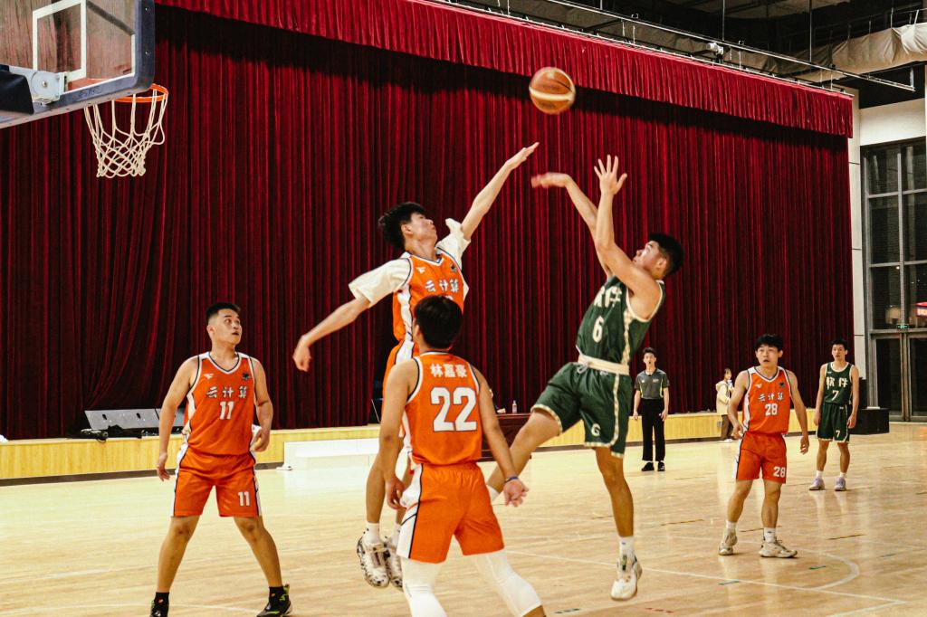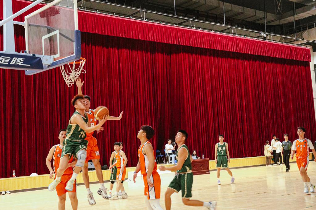 哨声响,赛事始。双方队员随即展开了激烈的比拼,突破、上篮、快攻、抢断,平时的训练场就是此时的赛场。在赛场上,队员们攻守兼备,默契配合。快速地奔跑,矫健地转身,敏捷地跳跃,精准地投篮,球与人似融为一体,连在掌心,最终以一个漂亮的抛物线,赢得全场欢呼。扬起的嘴角,挥洒的汗水,是少年们最恣意热血的青春。