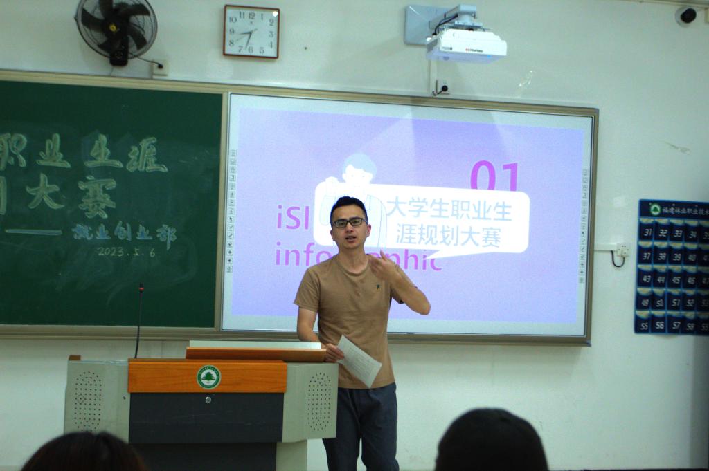 为了加强大学生职业生涯教育和就业创业指导工作,引导大学生客观透彻进行自我认知和评估调整,提高就业技能与实践能力,5月6日,信息工程系于教学楼601举办2023年大学生职业生涯规划大赛。信息工程系学生科科长兼团总支书记吴文杰、专职组织员谢婉欣及两委会学生干部担任本次大赛评委。