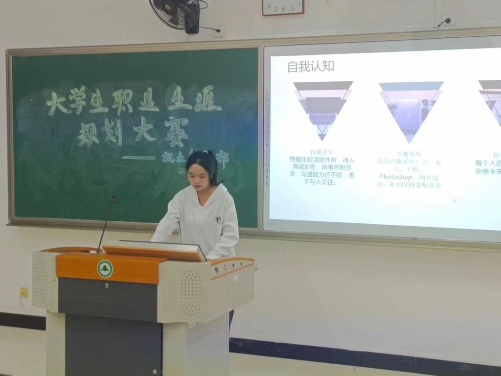 本次比赛分为PPT展示、现场答辩两个环节,上场的选手基于自己的职业生涯规划书准备相应的职业生涯演讲PPT,以饱满的状态上台展示自己的职业生涯规划,比赛过程中,参赛选手在规定的时间内结合环境分析、就业形势、个人意愿等方面阐述自己的职业生涯规划。