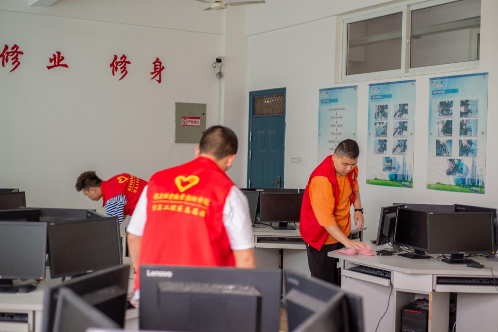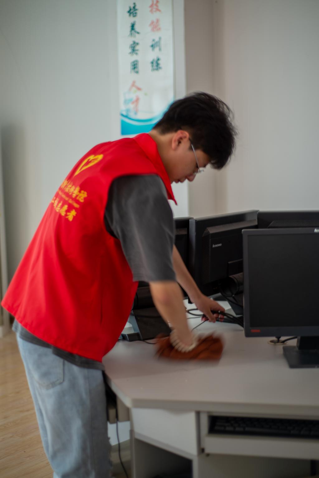 同学们,实训三教室变得干净、舒适,主要归功于全体长青志愿者的不辞辛苦的打扫,感谢这群最可爱、富有爱心的人儿,温暖着你我!在此,我们也向同学们发出倡议:让我们共同守护实训三环境卫生,爱护机房桌椅、电脑等公共设施,不乱扔垃圾,不乱涂乱画,不随意粘贴物品,不带食品等无关学习物品进入机房。