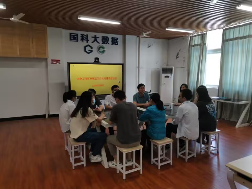 2023年3月9日下午,信息工程系专任教师在一起开展活页式教材建设座谈会,参加会议的有信息工程系党总支书记兼主任华建祥,系教学科科长蔡尊煌,教研室主任和专任教师。