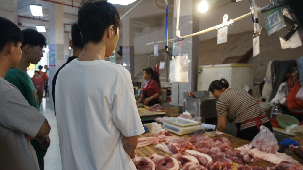厨艺大赛开始前,同学们便早早的来到市场采购本次大赛所需食材和调味料,一边体验生活,一边互相分享一些挑菜的技巧、砍价的方式,并总结出了一系列买菜的小常识与小妙招。食材的顺利采购为即将到来的厨艺大赛做充分的准备,为本次活动的圆满举办打下基础。