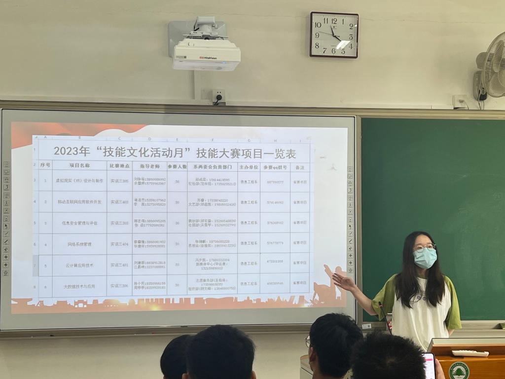 主题班会课是思想道德教育的重要阵地,为了认真学习贯彻习近平总书记关于教育的重要论述和指示精神,弘扬劳动精神,强化大学生思想引领,落实立德树人的根本任务,营造浓厚的校园育人文化氛围,2023年5月,信息工程系各班辅导员组织班级学生开展“劳动教育”主题班会,此外,还带领学生开展了学风建设和科学道德教育、《高等学校学生行为准则》学习教育、“技能文化活动月”学习教育、“工匠精神”主题教育、防诈骗与防溺水安全教育等活动。