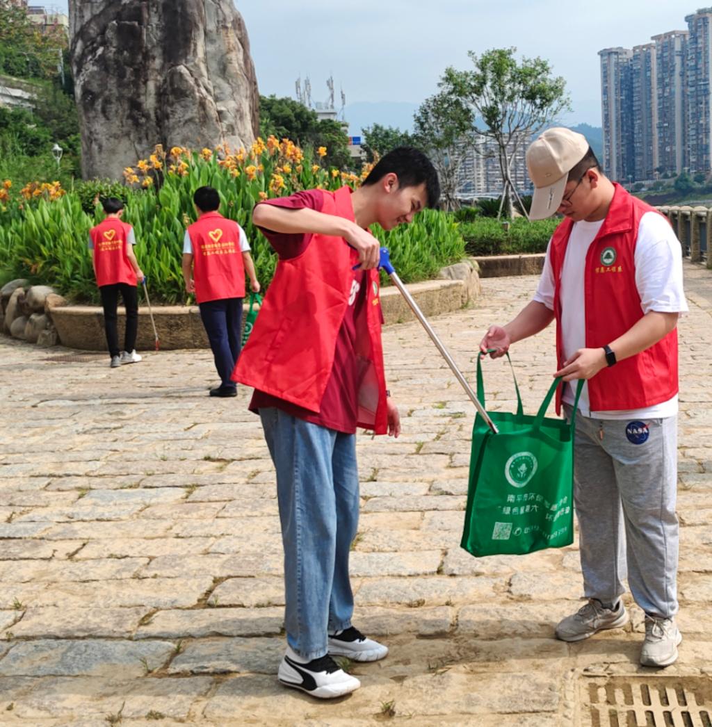 志愿者们早早来到了延平区双溪楼集合,他们一人手拿无纺布垃圾袋,一人手拿垃圾钳,沿着绿化带和河岸对小水门公园展开拉网式的清理,志愿者们互相协作配合,细心地搜索每个角落,将散落在绿化带内的塑料包装袋、烟蒂、纸屑等垃圾装入无纺布垃圾袋里,最后进行集中分类处理。志愿者们走过的地方焕然一新,红色马甲点缀着公园,形成了一道靓丽的风景线。