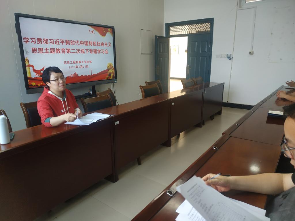 为深入开展学习贯彻习近平新时代中国特色社会主义思想主题教育,5月25日,信息工程系教工党支部于实训三408会议室开展学习贯彻习近平新时代中国特色社会主义思想主题教育专题学习会。信息工程系教工党支部书记张晓璐主持活动,支部党员参加会议。
