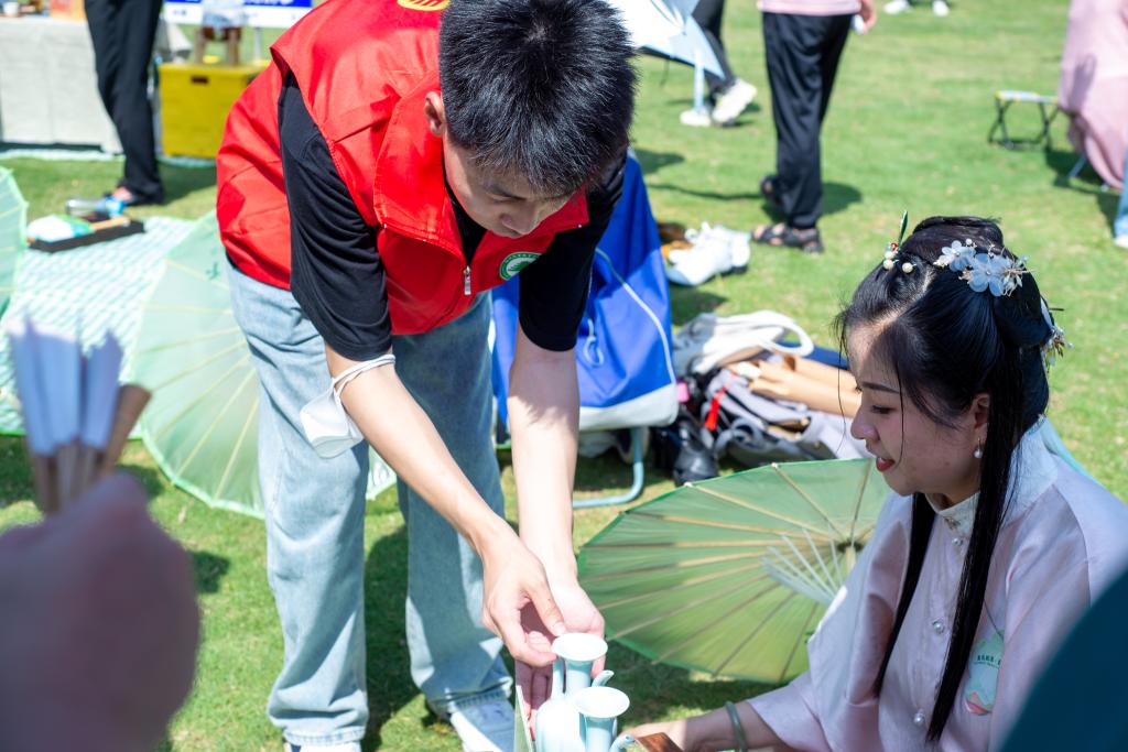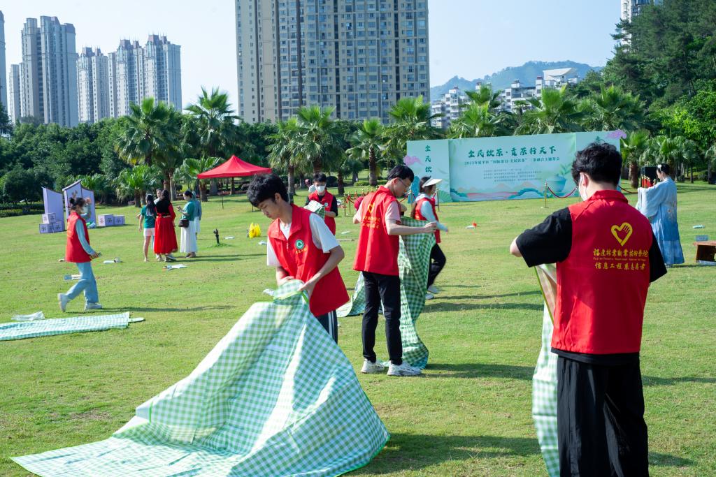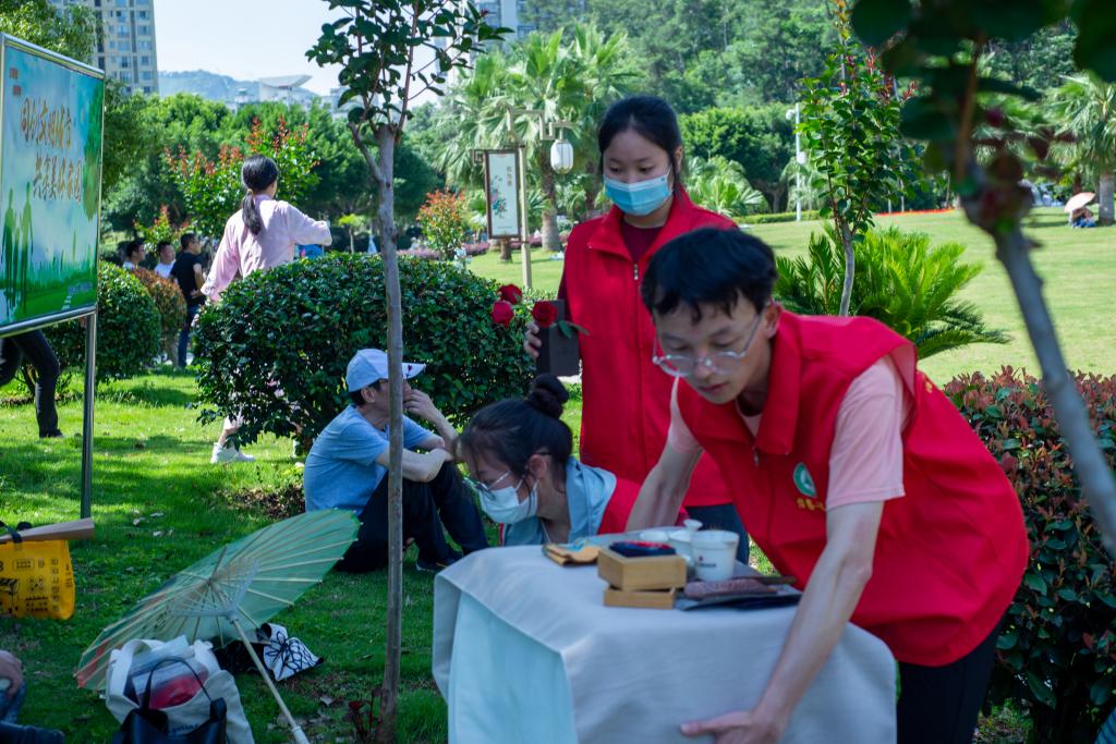 2008年12月由中国茶叶学会提出“全民饮茶日”倡议,2019年联合国大会第74届会议将每年5月21日确定为“国际茶日”,为了进一步普及茶知识,弘扬茶文化,积极倡导健康茶饮生活,讲好沿河茶故事,推动"茶文化"进校园,5月28日,信息工程系学生科科长兼团总支书记吴文杰带领长青志愿服务队的志愿者们赴延平区玉屏公园开展2023年延平区“国际茶日·全民饮茶”三茶融合主题茶会志愿服务活动。