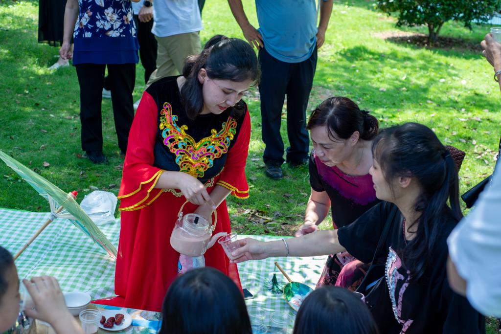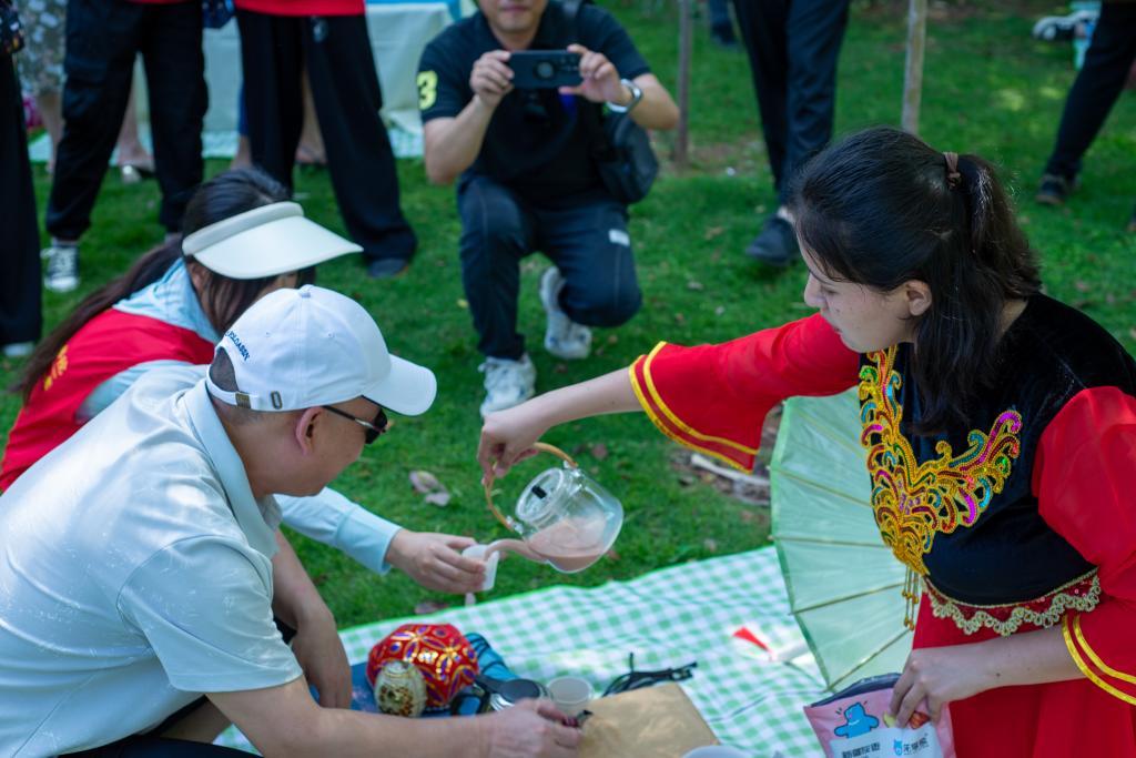 在煮茶品茗、茶文化分享等趣味互动环节中,我们的志愿者们也踊跃参与,各展绝活,或是为大家展示“奶茶”的多元化烹茶技艺,或是观景品茗,纵论古今茶文化发展,并一同欣赏匠心独具的茶艺以及舞蹈、古筝演绎等文艺展演。