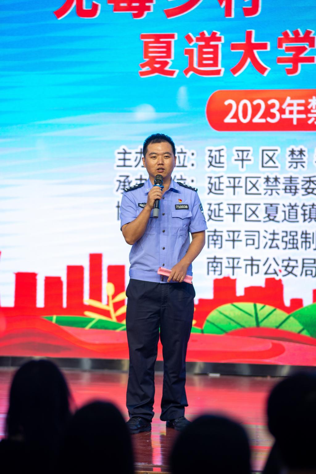活动伊始,林则统同学和许思怡同学为大家准备了动听的开场歌曲《裂缝中的阳光》,随后,禁毒办林榆警官上台给大家做毒品危害知识普及,为同学们讲解了市面上各式各样的毒品并教导同学怎样预防毒品,帮助同学们正确认识“毒害”,从而提升大家的禁毒意识与分辨毒品的能力。林榆警官还通过禁毒案例为同学们讲解毒品知识,增强了大家对毒品危害性的认识。同时还呼吁新时代青年主动学习禁毒知识,争做“禁毒宣传员”,积极检举涉毒违法犯罪,自觉参与到禁毒斗争中,营造了良好的全民禁毒氛围。