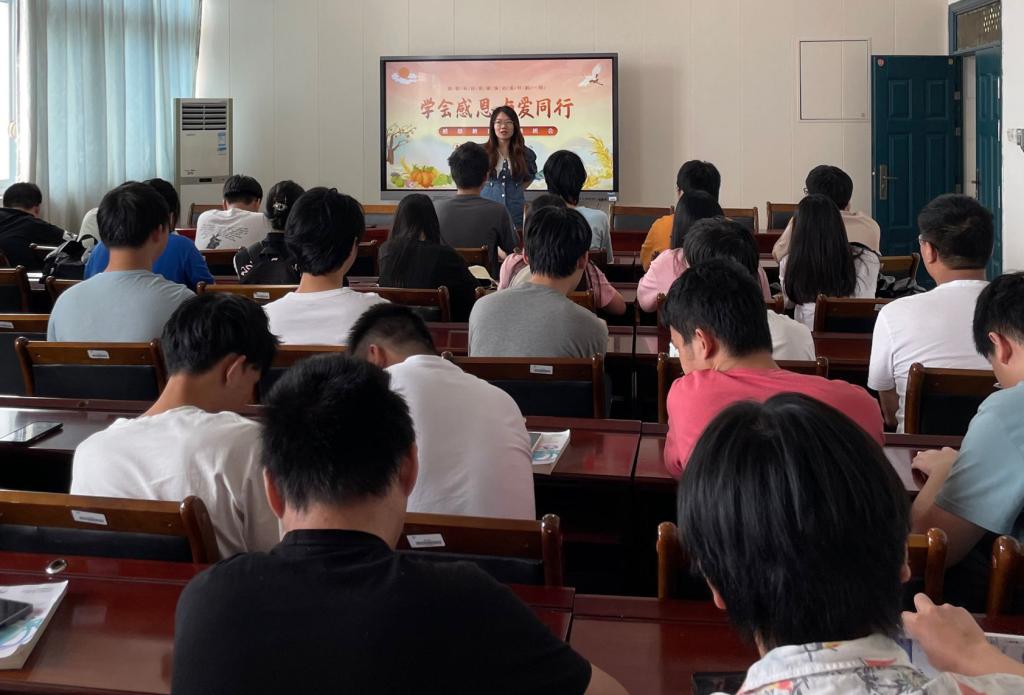 感恩,是中华民族的传统美德,更是我们一生的必修课,同学们在辅导员的引导下踊跃分享身边的感恩小故事、写下未来目标。班会气氛热烈活跃,同学们纷纷表示,将怀着感恩的心去迎接未来的学习和生活,把感恩内化于心、外化于行,同时夯实专业基础和实践操作能力,将家国情怀厚植到职业生涯规划当中,把个人理想追求融入现代化国家建设新征程,为国家建设贡献自己的一份力量。
