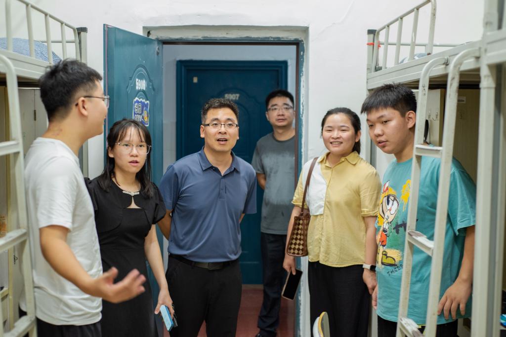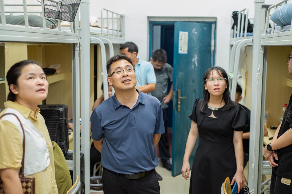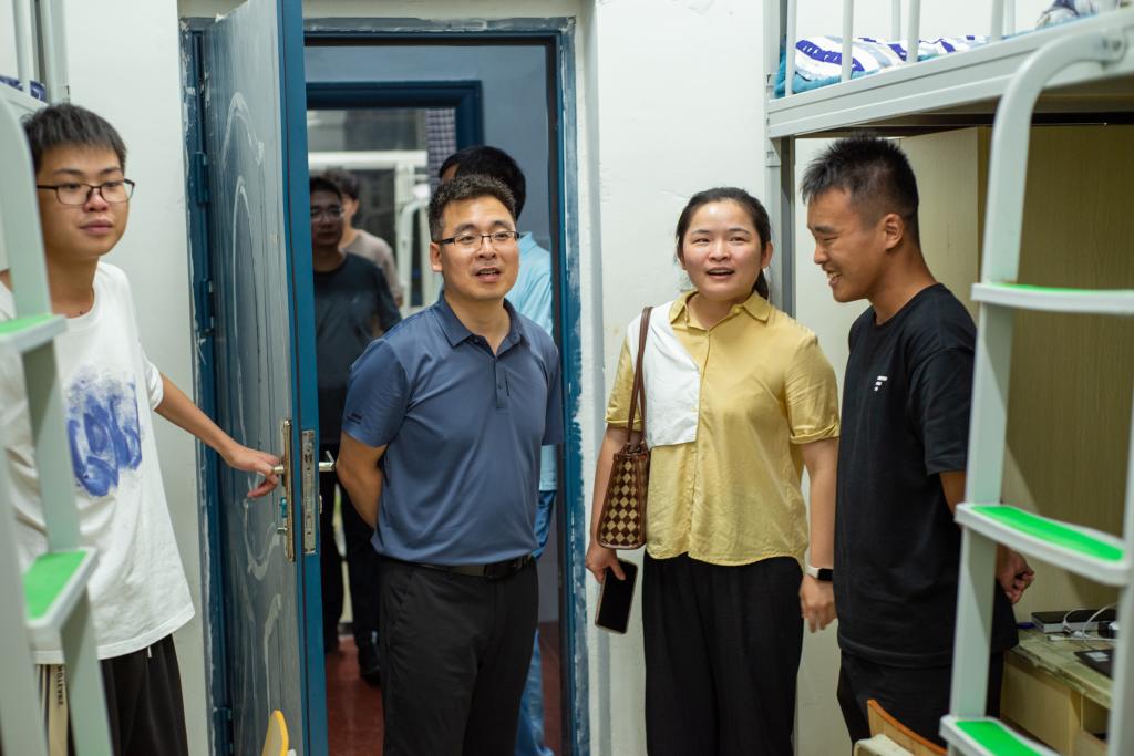 华建祥主任一行实地检查学生宿舍的公共设施、宿舍安全等情况。走访期间,教师们与学生亲切交流,询问同学们新学期的感受及生活情况,认真听取同学们的各方面意见建议,叮嘱同学们要注重个人卫生和宿舍环境卫生,鼓励同学们新学期要树立学习目标,做好学业规划,并再次强调宿舍安全,同时希望同学们在校期间要遵守相关规章制度,养成良好的作息习惯,提高消防安全意识。