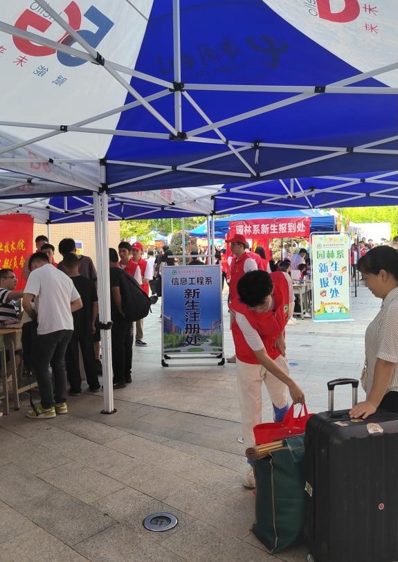 金凤送秋,丹桂飘香,2023年9月8日,来自全国各地的新生学子们推着行李,踏进了林职院的大门,为确保迎新工作的有序进行,前一天(9.7)晚上圆满召开了志愿者培训大会。为确保新生顺利入学,我系高度重视,提前制定好迎新方案并安排百余名师生志愿者参与此次迎新工作。