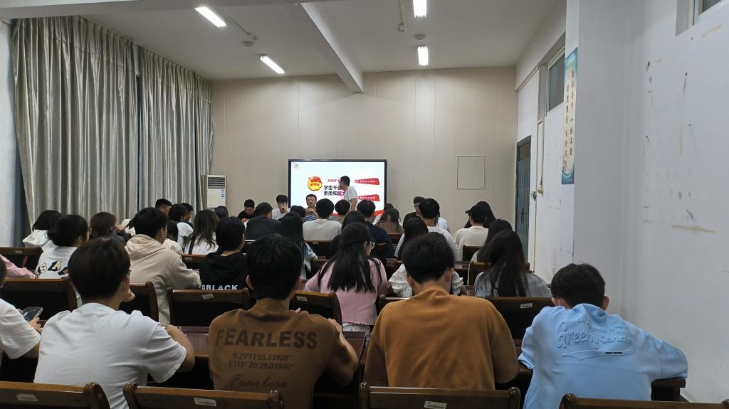 为了加强信息工程系两委会学生干部队伍的建设与管理,提升学生干部的综合素养、工作能力和团队合作精神,进一步发挥学生干部的先锋模范作用,促进学生工作的发展和建设,信息工程系于10月24日晚9点组织召开2023-2024学年第一学期两委会学生干部培训大会,本次会议由学生科科长兼团总支书记吴文杰主持,系两委会全体学生干部参加。
