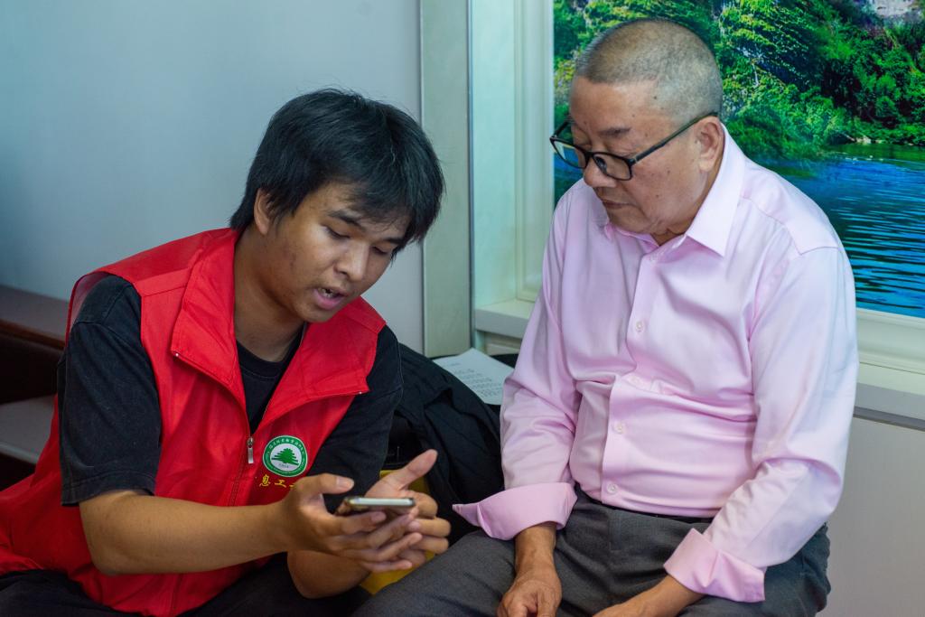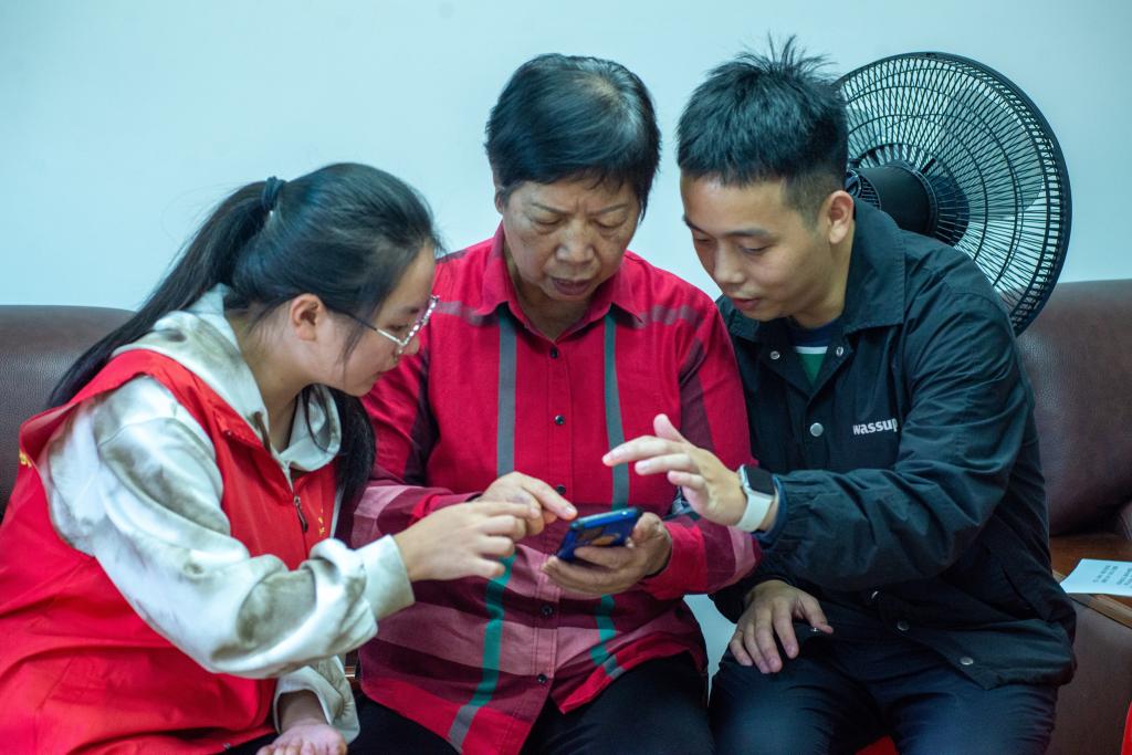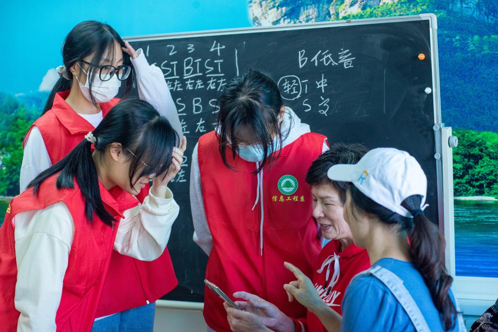 除了教授智能手机的使用技巧,志愿者们还跟老人们学习了当地的方言——南平话。志愿者们积极参与互动,认真学习南平话的发音和用语,与老人们进行了愉快的交流。