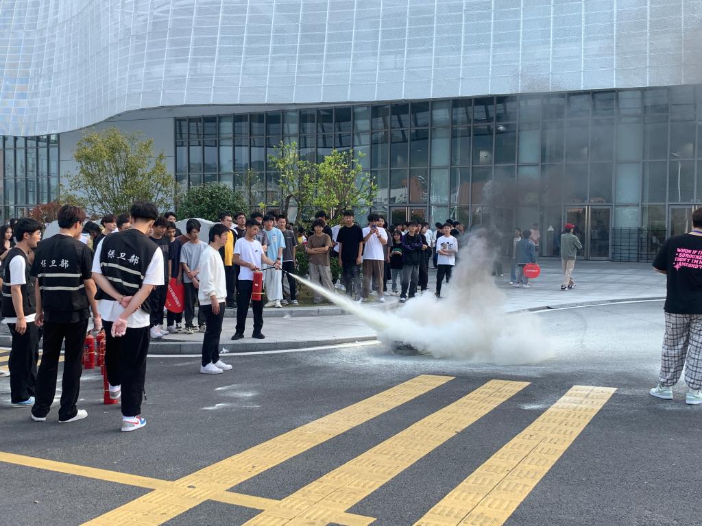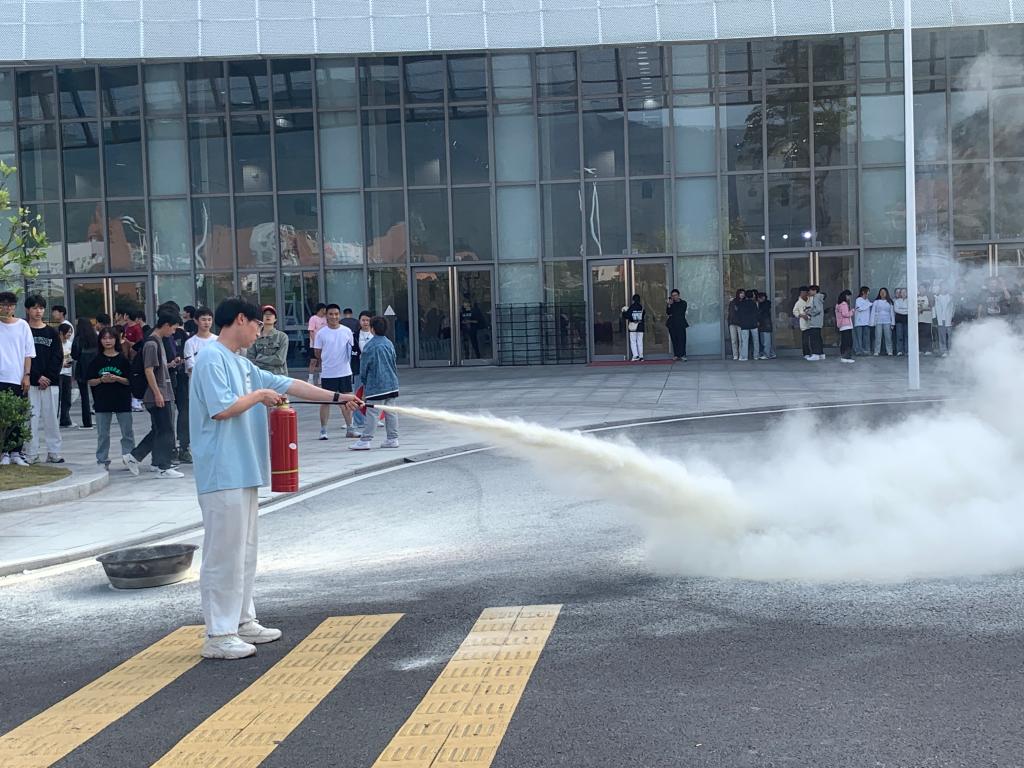 在江南体育馆前,学院安保处老师现场讲解了灭火器的使用步骤,同学们按照老师教授的使用方法进行了消防灭火器材实操演练。通过实践操作,使同学们扎实掌握了消防器材的基本使用方法。