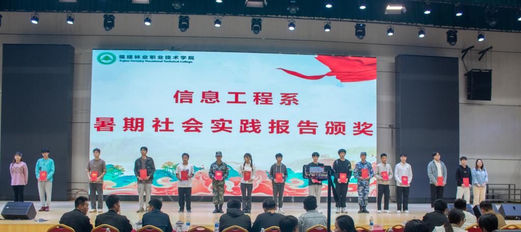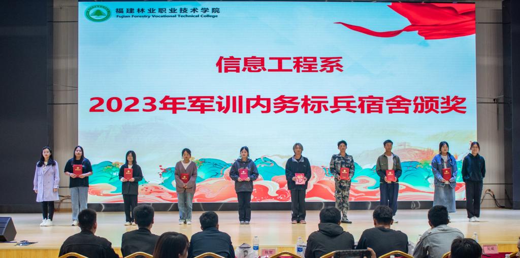 班班唱暨迎新晚会结束后,学院团委副书记(主持工作)雷栩艺老师、信息工程系党总支副书记(主持工作)叶文美老师、谢婉欣老师为红歌班班唱获奖班级颁发奖状。丁丹老师、陈晞老师为军训内务标兵宿舍颁发奖状,郑燕丽老师、林珍老师为暑期社会实践报告获奖同学颁发奖状,范秋叶老师、李思凤老师为新生助导颁发聘书,军训教官代表吴斌、朱颖轩为军训优秀学员颁奖。