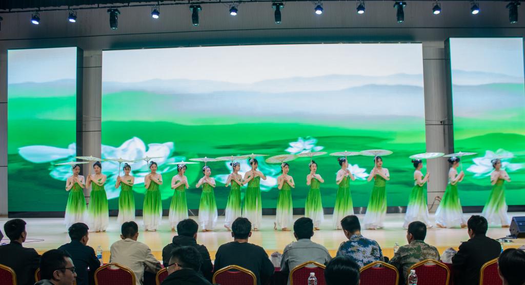 天麟艺术团随着婉转流畅的旋律舞起《天麟花开》,轻盈的舞步仿佛那花就绽放在我们面前,为我们铺开这场盛会的画卷。在舞台灯光影的交叠下,年轻有力的船帆已经启航。音符化作繁星,歌声穿透心灵。