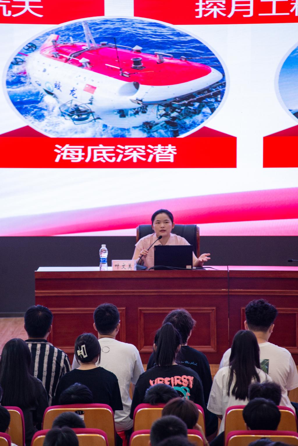 2023年9月10日下午3时学术报告厅,信息工程系党总支副书记叶文美以"强国复兴有我,做新时代爱国爱校爱自己的大学生"为题,带来了一堂有高度、有温度、有深度、有情怀的新生“开学第一课”。