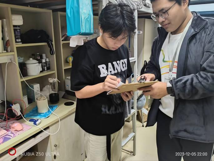 (3)宿舍无违规电器,无电子排插上床。