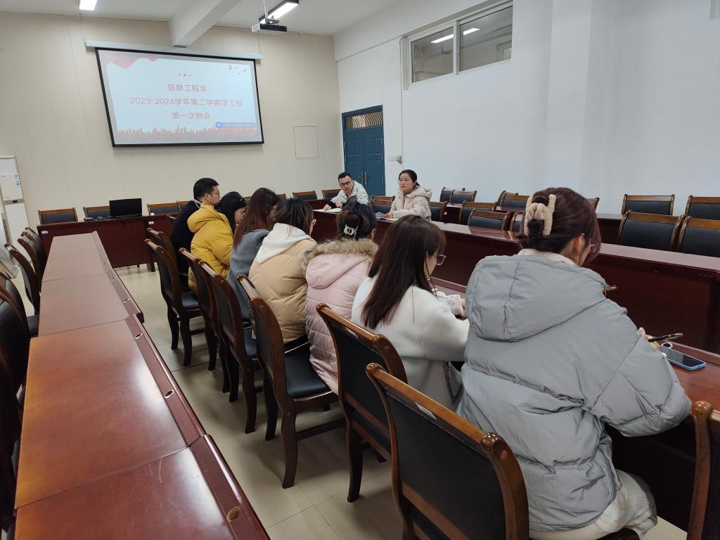 为进一步加强学工队伍建设及做好学生管理服务工作,统筹安排新学期各项工作,确保新学期系部各项学生工作平稳有序开展,2月28日上午,信息工程系在系部4楼会议室召开信息工程系2023—2024学年第二学期学工组第一次例会暨学生安全稳定工作会议。系党总支副书记(主持工作)叶文美、学生科科长吴文杰以及全体专职辅导员参加会议,会议由叶文美书记主持。