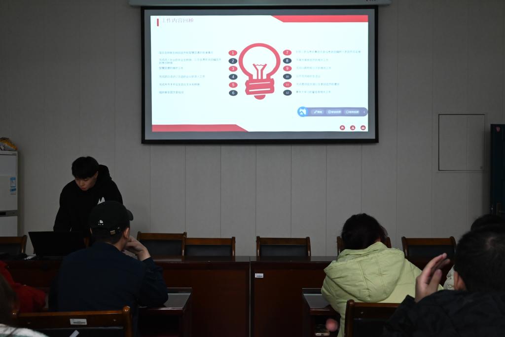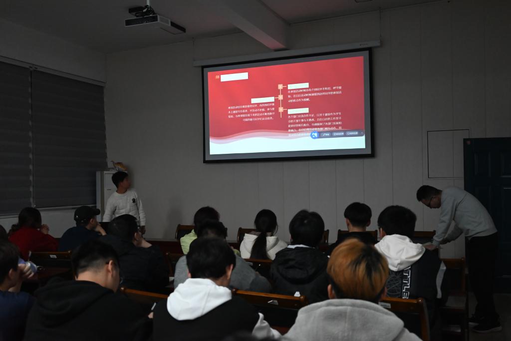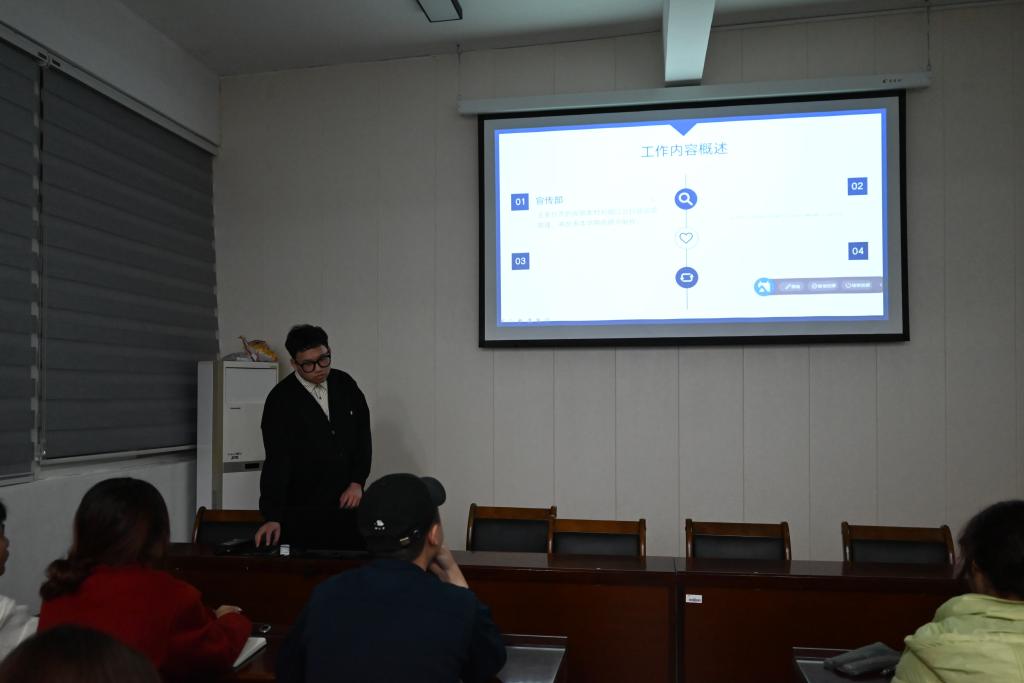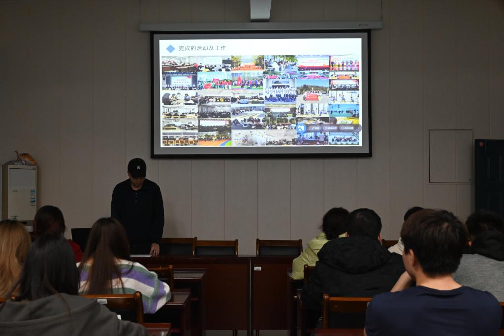 随后,团总支副书记吴逸康和学生会主席吴斌、副主席滕易涵、副主席朱颖轩在工作述职环节,分别从基础工作介绍、存在的不足、对于未来的展望三个方面进行汇报,分别表示在上学期的工作中虽然取得一些成绩,但也存在不足,在今后要继续提高工作能力,更好地为同学们服务。对新学期即将开展的各项工作进行分工部署,并表示新学期将注重丰富同学们的校园生活体验,注重沟通协调,重视创新,加强组织策划,提高工作效率。各部门负责人围绕第一学期实际工作,对第一学期的工作情况进行了总结,分析存在的问题与不足,并详细汇报了新学期的工作目标和计划。