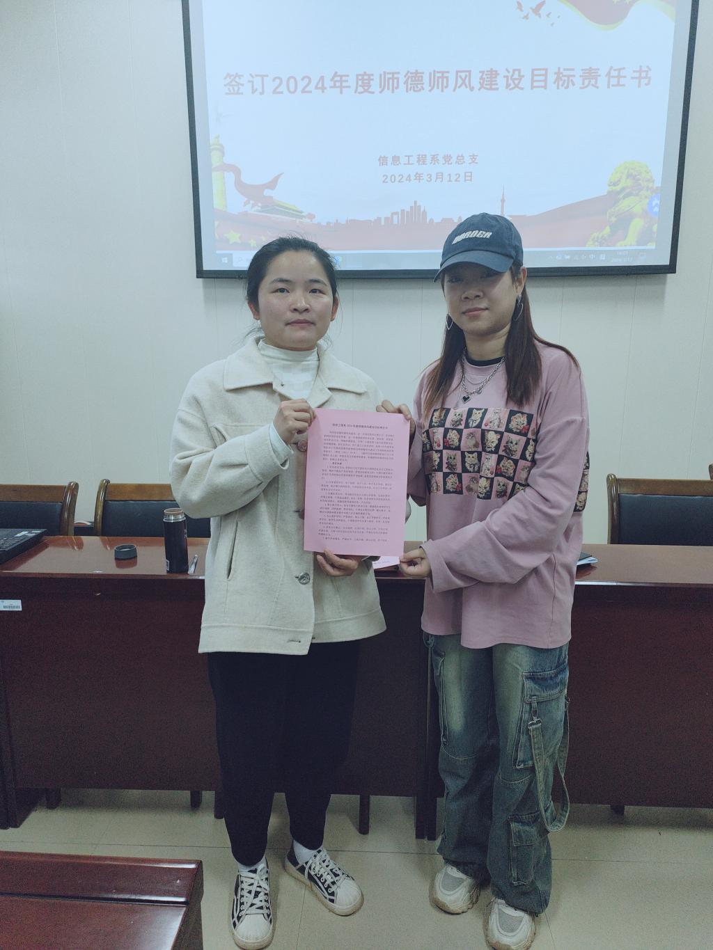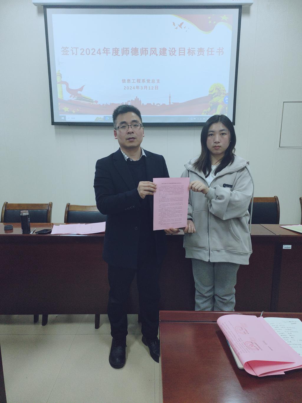 会后,系部教职工签订了《信息工程系2024年度师德师风建设目标责任书》。