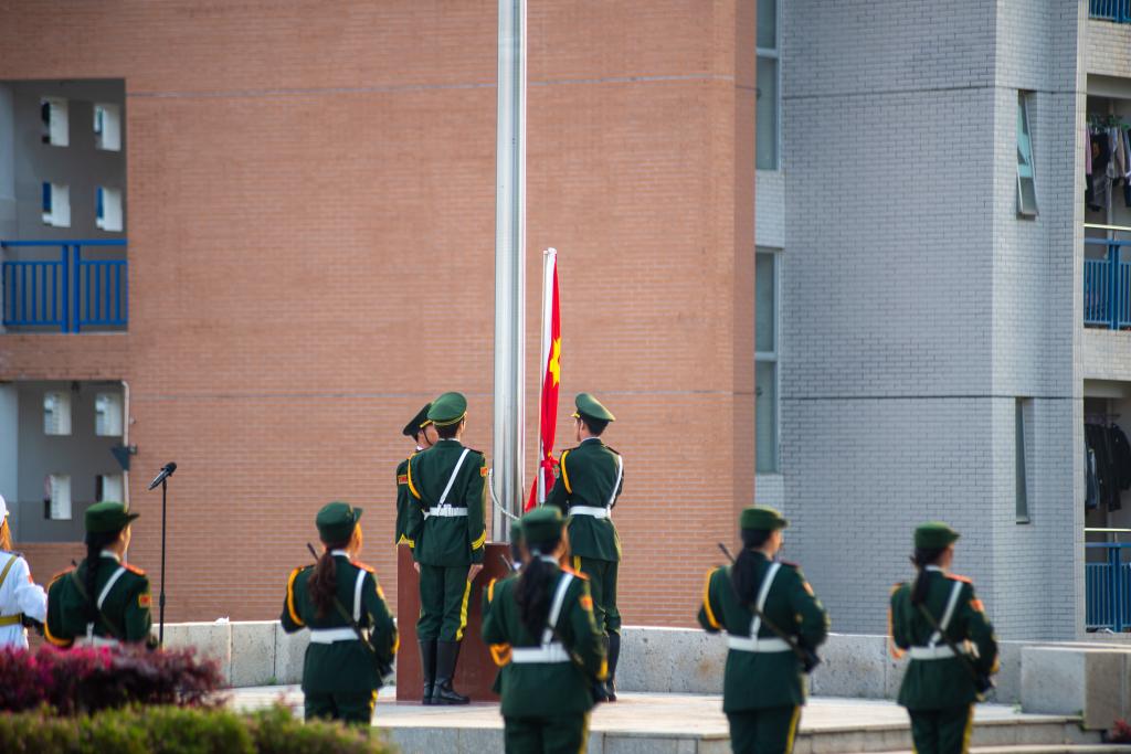 迎着初春的朝阳,国旗护卫队迈着整齐划一的步伐,以庄严的队礼护卫着五星红旗走向升旗台,旗手振臂一挥,鲜艳的五星红旗冉冉升起,雄壮的《义勇军进行曲》响彻操场。全体师生在鲜艳的红旗下,豪情满怀,将以踔厉奋发的姿态、笃行不怠的决心迎接新学期的到来。