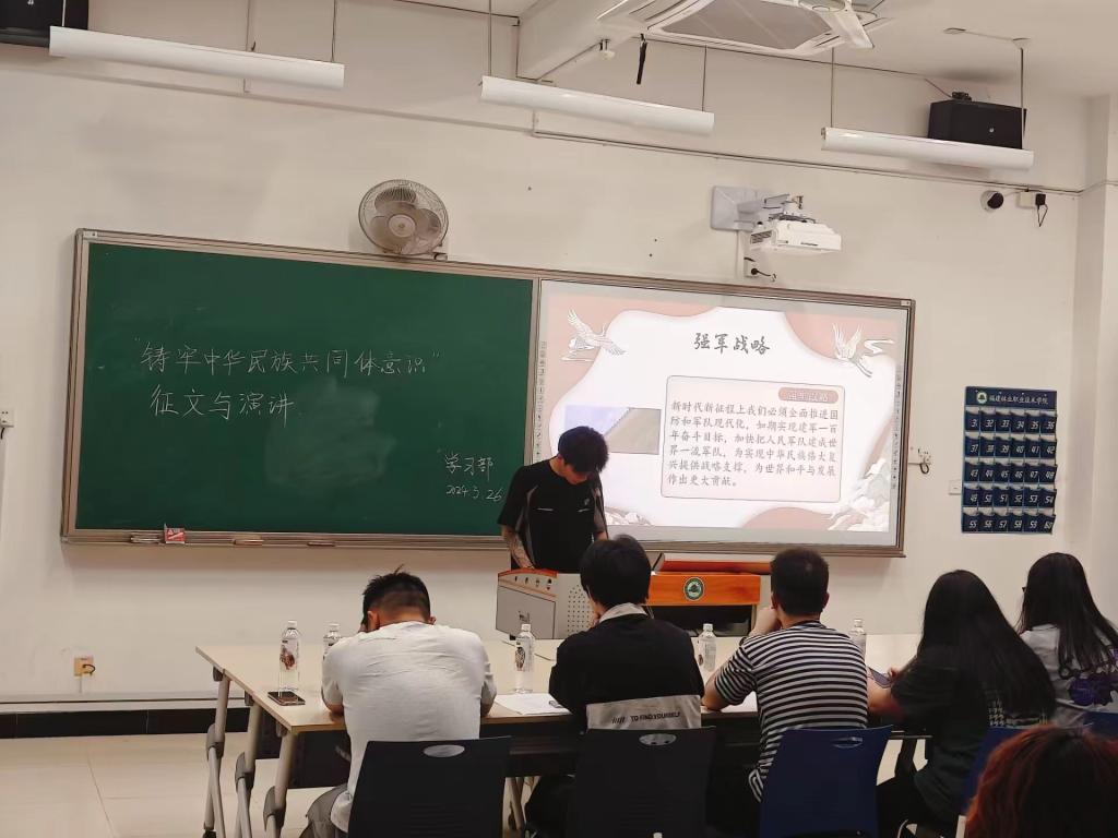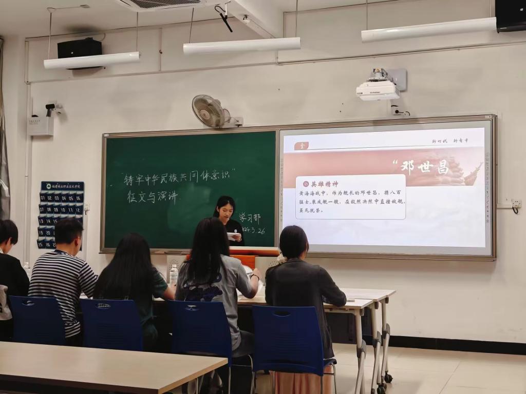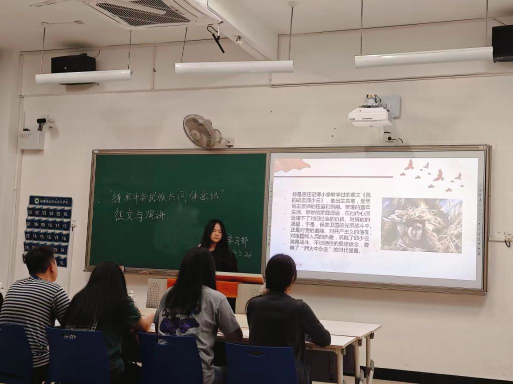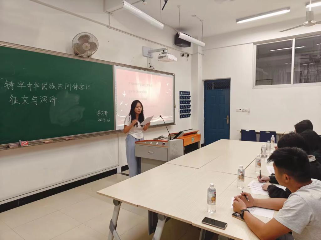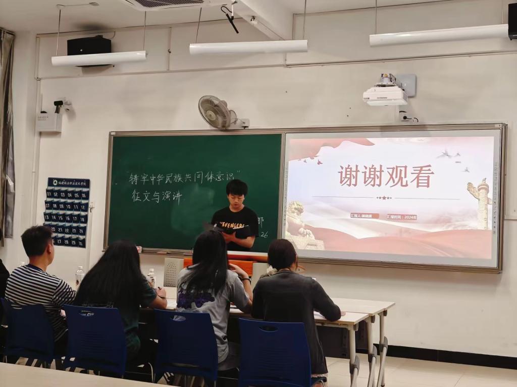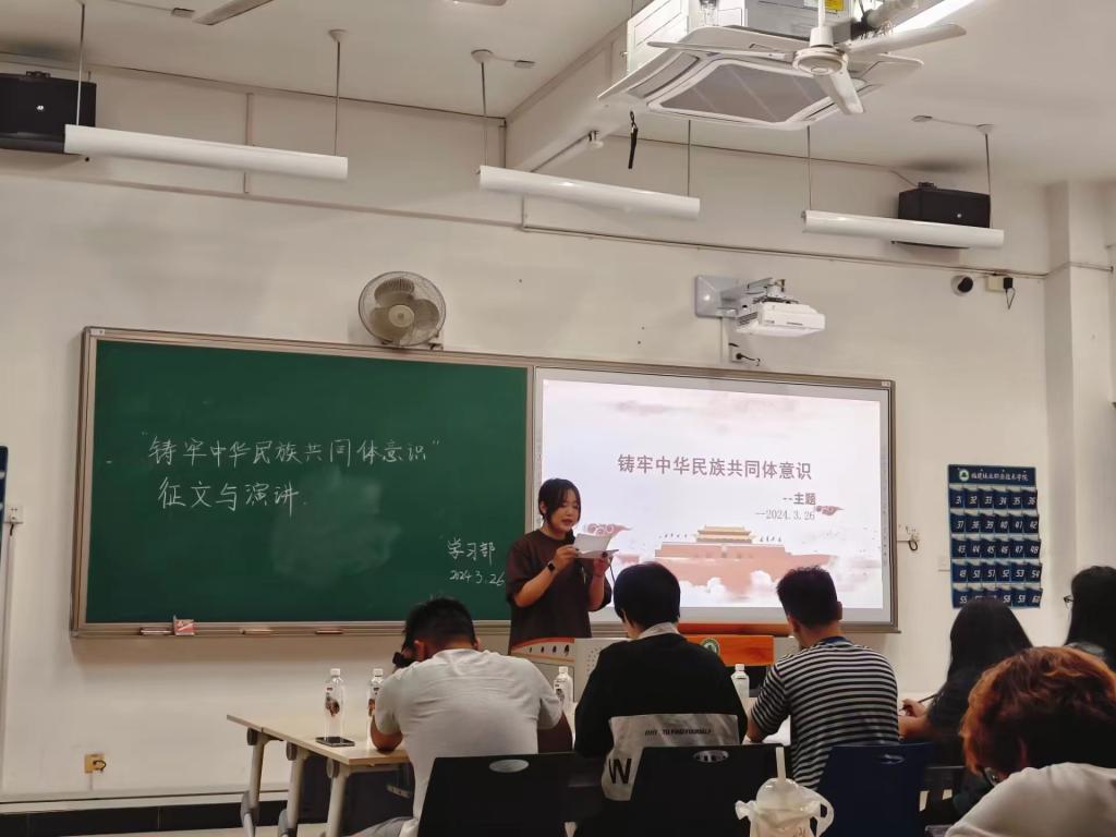 为深入学习贯彻习近平新时代中国特色社会主义思想和党的二十大精神,推进民族团结进步工作,教育引导各族大学生坚守中华文化立场,聚焦铸牢中华民族共同体意识主线,加强各族学子之间的交往交流交融,促进民族团结进步,2024年3月26日晚7点,信息工程系在实训四教学楼209举办了“铸牢中华民族共同体意识”征文与演讲比赛活动。