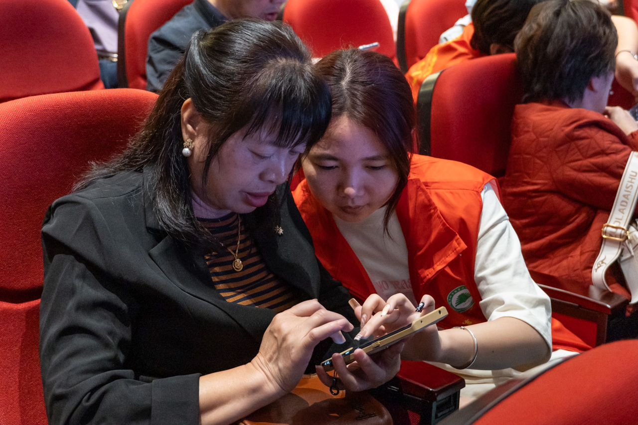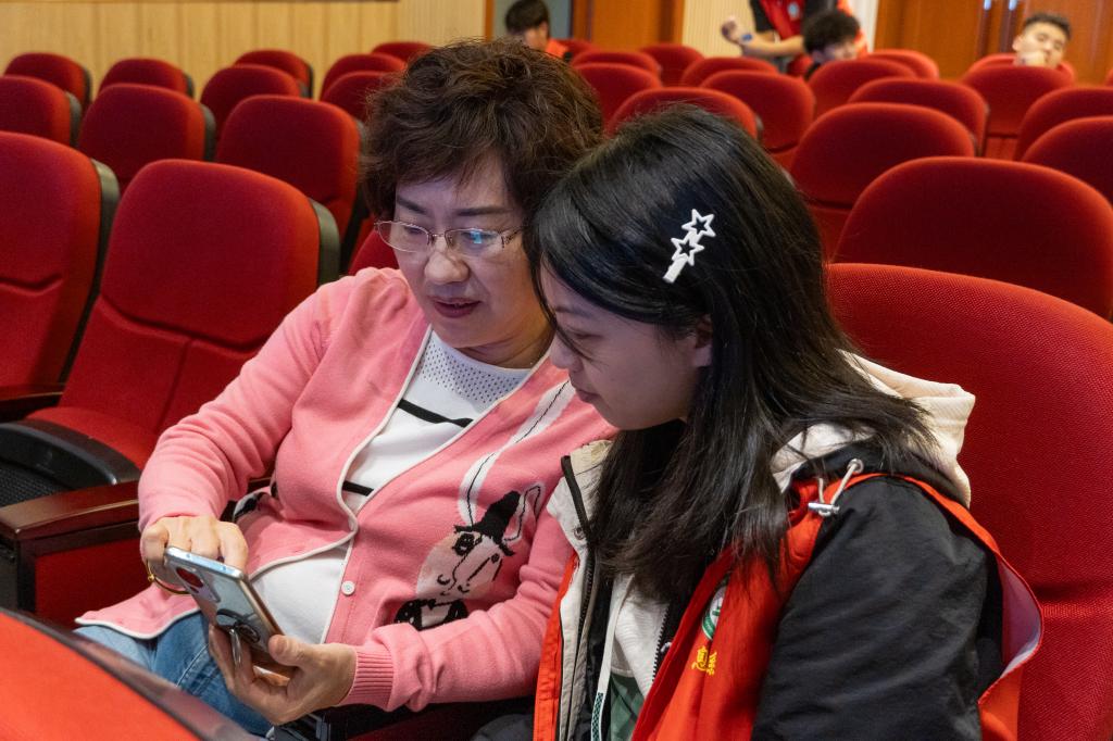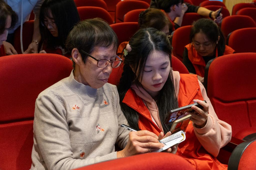 在活动现场,志愿者们热情地与老年人互动,耐心地教他们如何使用剪映这款app,包括视频剪辑、添加音乐等基本操作。老人们对学习新技能表现出了浓厚的兴趣,与志愿者们积极交流,现场氛围十分活跃。
