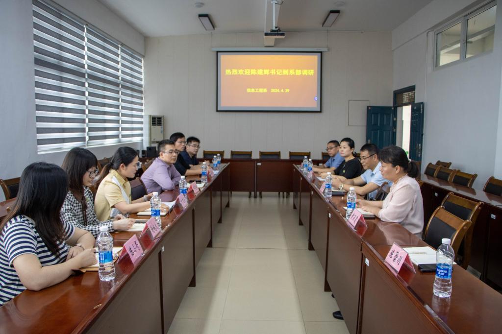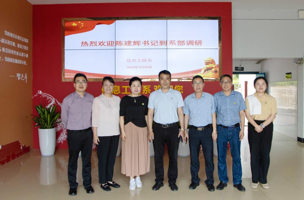 2024年4月29日,学院党委书记陈建辉深入信息工程系调研指导工作,院组织部(统战部)部长李霞、党政办主任陈政、人事教育处处长黄丽霞、宣传部副部长陈蕾羽陪同调研,信息工程系党政领导班子、教研室负责人参加了调研。