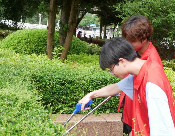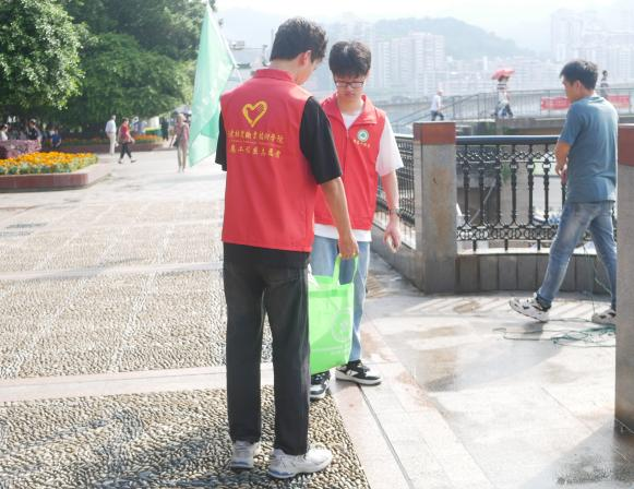 早上8点30分,志愿者们齐聚南剑州大剧院,为今天的行动在进行准备。志愿者们身穿志愿者马甲,开始分发捡垃圾的工具。志愿者手持垃圾钳,肩负起环保责任,同时,几位志愿者则手持环保袋,共同维护环境卫生。