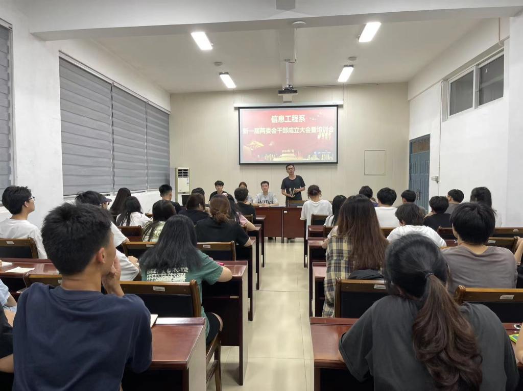 为促进新老学生干部之间的经验交流与传承,共同探讨系部学生工作的发展方向和创新思路,帮助新一届学生干部提升工作的质量和效率,2024年7月1日晚21:30,信息工程系于信工楼408会议室组织开展“两委会”新老学生干部座谈会,本次会议由信息工程系学生科科长兼团总支书记吴文杰老师主持。
