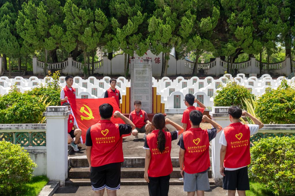 为持续深入学习贯彻习近平新时代中国特色社会主义思想和习近平总书记对学校思政课建设的重要指示精神,着力培养担当民族复兴大任的时代新人,以良好的精神风貌和青春热情迎接新中国成立75周年,福建林业职业技术学院师生积极响应中共福建省教育工作委员会关于“追寻领袖足迹 体悟伟大变革”2024年全省大学生暑期社会实践活动号召,成立了由信息工程系团总支书记兼学生科科长吴文杰老师、吴金山老师担任指导老师、12名学生干部组成的“长青”实践小分队,在7月9日,“长青”实践小分队前往福建省爱国主义教育基地——东山县寡妇村展览馆和东山县战斗烈士陵园。