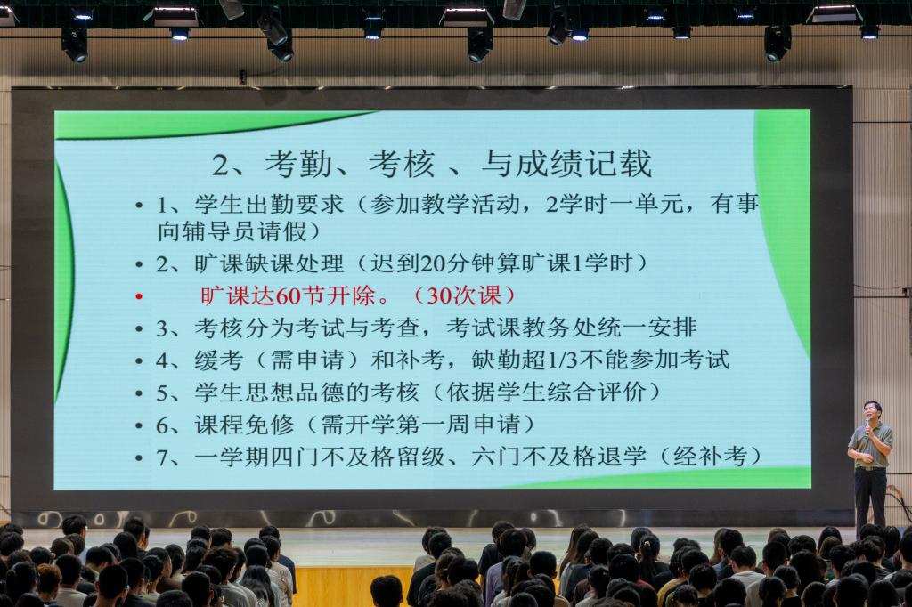为帮助新生更好地适应大学生活,了解学校的各项规章制度及实训室安全管理制度,2024年9月10日晚19点,信息工程系于江南体育馆开展学籍管理、实验室安全教育讲座暨两委会部门介绍,本次讲座由信息工程系教学科科长蔡尊煌老师主讲,学生科科长吴文杰老师主持,全系新生参与。