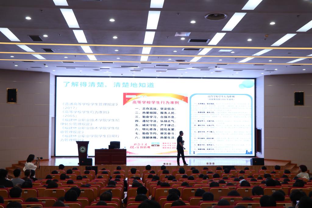 讲座伊始,吴文杰老师通过询问同学们来林职院的感受、大学的规划、毕业之后职业方向等问题来开场。接着,他强调了校纪校规在大学生活中的重要性。他指出,校纪校规是保障校园秩序、营造良好学习和生活环境的基石,也是同学们顺利完成学业、实现个人成长的重要保障。