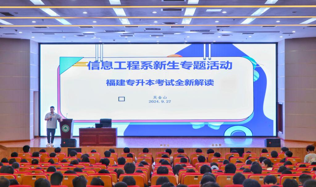 为帮助新生更好明确升学方向,了解考试内容,营造学习氛围。信息工程系于2024年9月27日20:00在江南学术报告厅组织开展专升本教育讲座,本次讲座由信息工程系吴金山老师主讲,2024级全体新生听讲。
