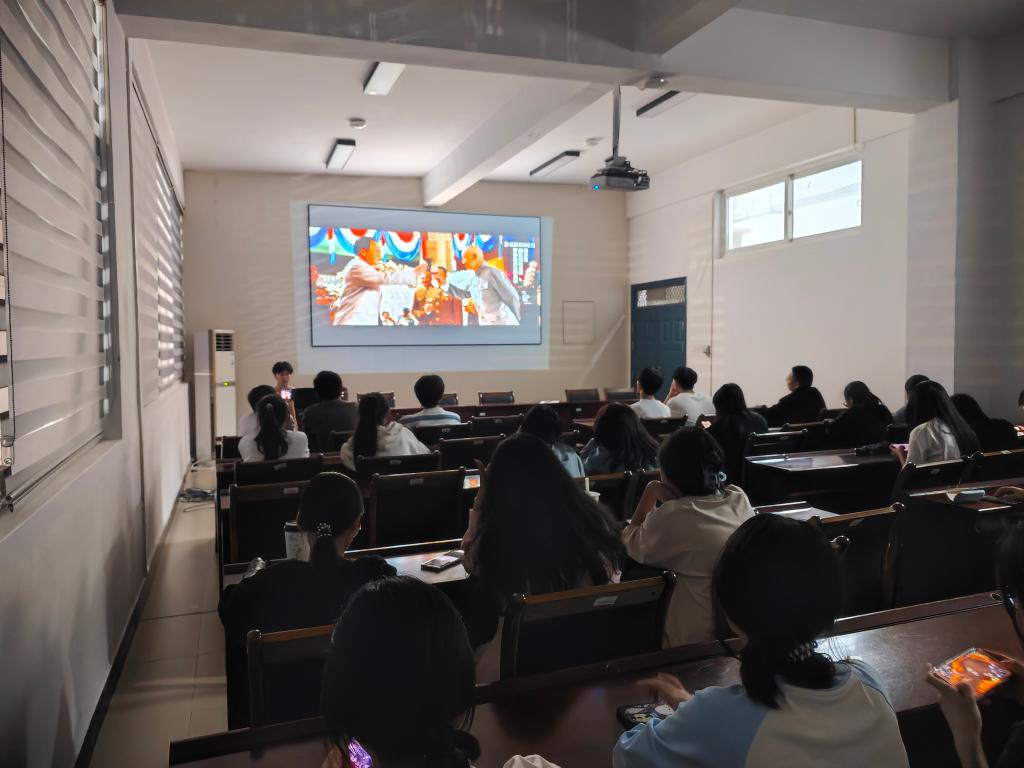 为了进一步加强系部学生们的爱国主义教育和国防教育,提高同学的爱国意识,激发同学的爱国热情,2024年10月9日19:00,信息工程系社会实践部在信工楼408会议室组织我系同学共同观看了经典电影《建国大业》。