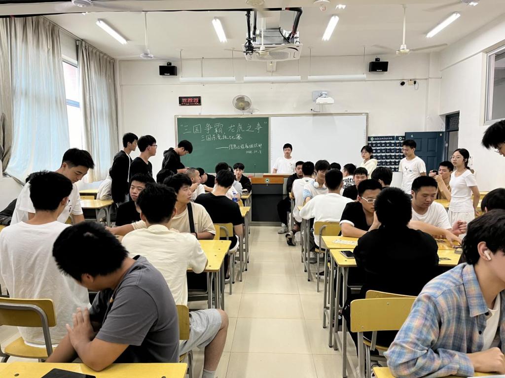 三国杀是一款融合了西方类似游戏特点,并结合中国三国时期为背景的桌上游戏。为丰富大学生课余生活和校园文化氛围,提高同学们的竞争和合作精神,锻炼和提高系部学子的思维能力,10月8日由信息工程系团总支主办、组织部承办的“三国争霸,龙虎之争”——三国杀竞技比赛在教学楼501教室顺利开赛。本次比赛吸引了众多三国杀爱好者前来参加,共同体验这一智慧与策略并重的竞技盛宴。