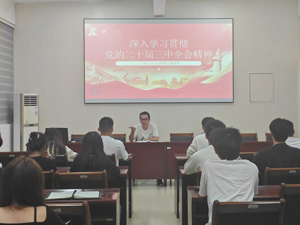 党的二十届三中全会是一次具有里程碑意义的重要会议,全会审议通过的《中共中央关于进一步全面深化改革、推进中国式现代化的决定》,为我国的发展指明了新的方向。对于大学生而言,深入学习贯彻党的二十届三中全会精神具有极其重要的意义。2024年11月11日19:00,信息工程系学生科科长兼团总支书记吴文杰老师向两委会学生干部宣讲党的二十届三中全会精神,全体两委会学生干部参加。