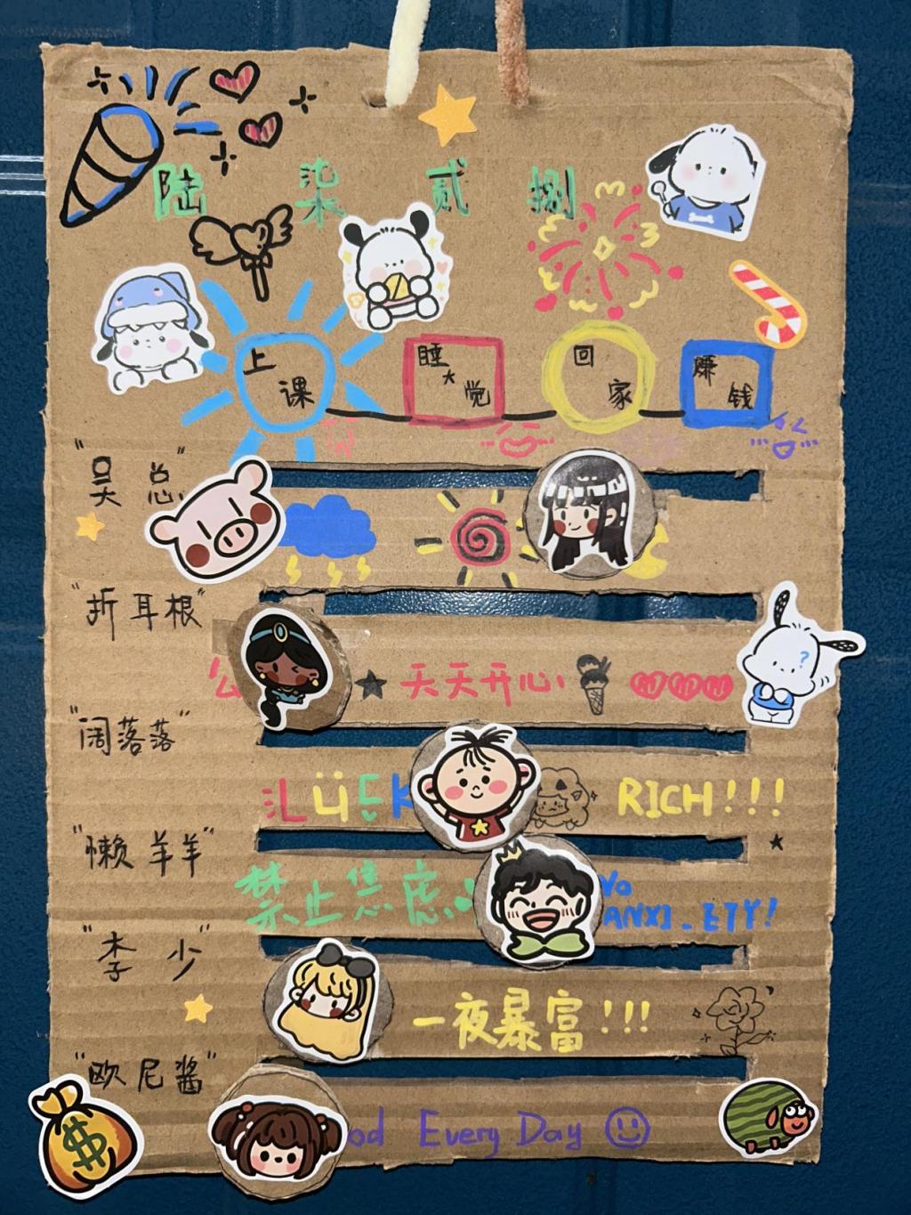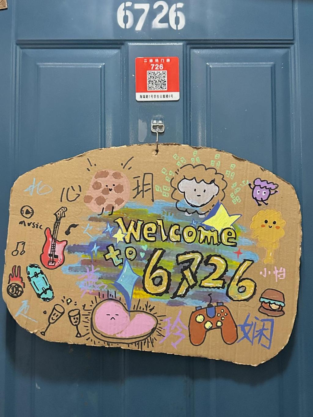 从中加入了宿舍每个人所追求的偶像或者角色,使门牌充满青春活力和创意。