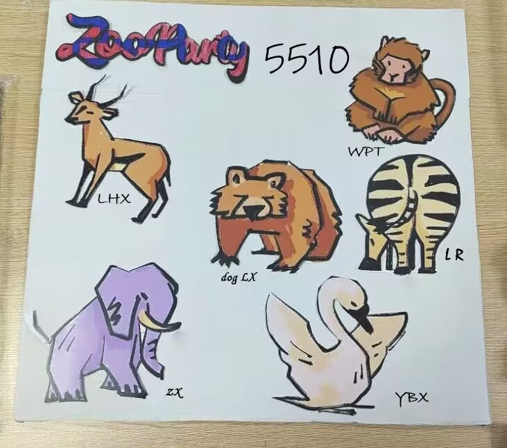 宿舍号:5510设计理念:本宿舍门牌号设计以动物为核心元素,选择不同的动物代表每位宿舍成员,是因为动物具有鲜明且多样的特质,将这些动物融合在门牌号设计中,不仅让每个成员都能找到专属的象征,表达了宿舍成员间相互尊重、相互包容的关系。